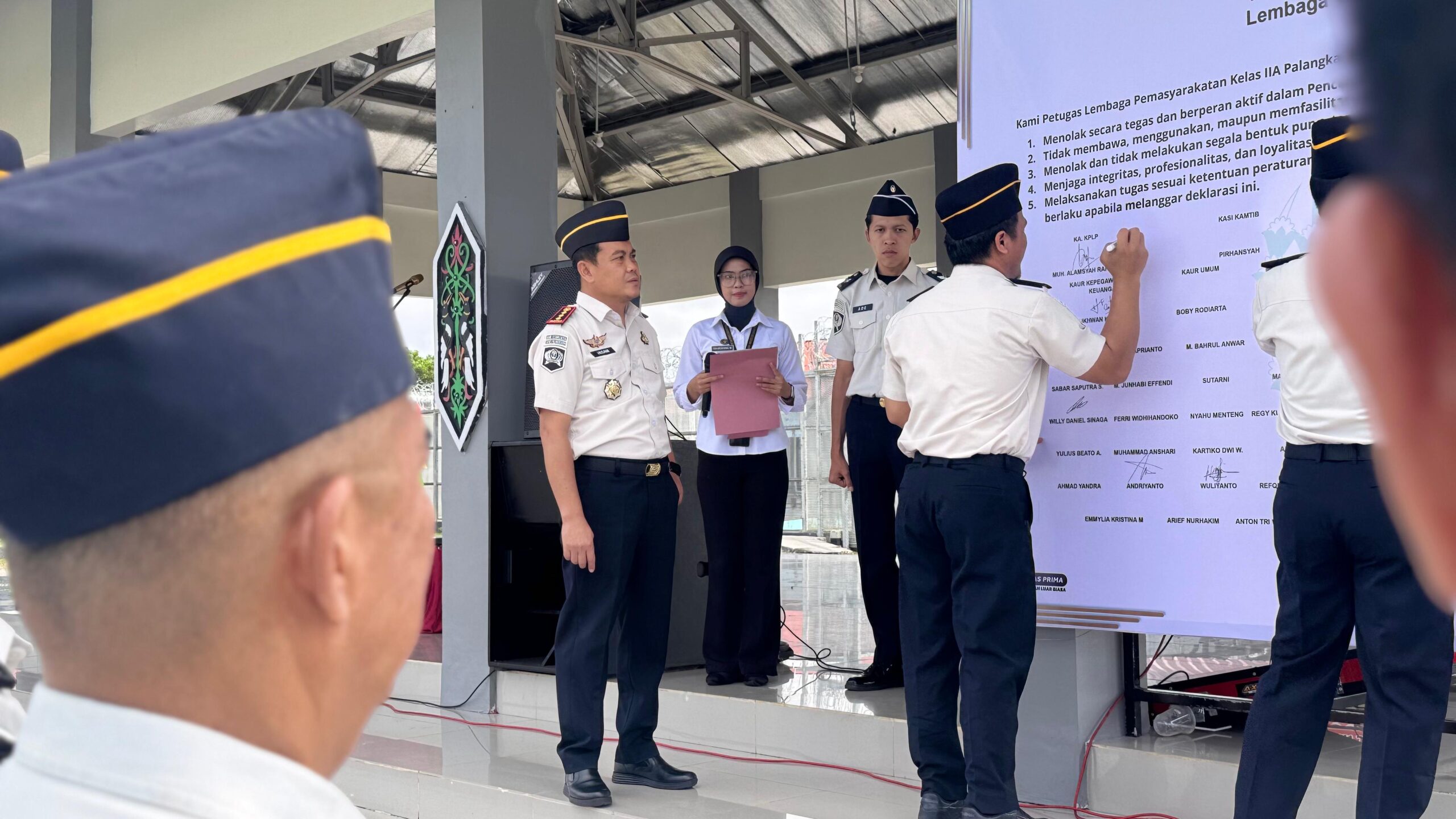 Palangka Raya – Lembaga Pemasyarakatan (Lapas) Kelas IIA Palangka Raya, menegaskan komitmennya dalam mewujudkan Zero handphone, pungutan liar, dan narkoba (Halinar) melalui Apel Deklarasi Ikrar dan Penandatanganan Komitmen Bersama. Kegiatan ini, menjadi langkah nyata dalam menciptakan lingkungan Lapas yang bersih dari handphone ilegal, pungutan liar, dan narkoba, Kamis (23/4).